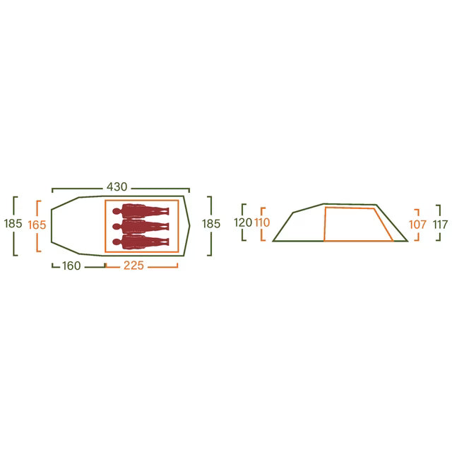- Length, inner tent: 225 centimeters